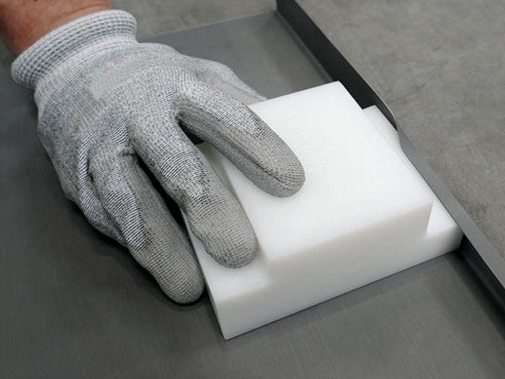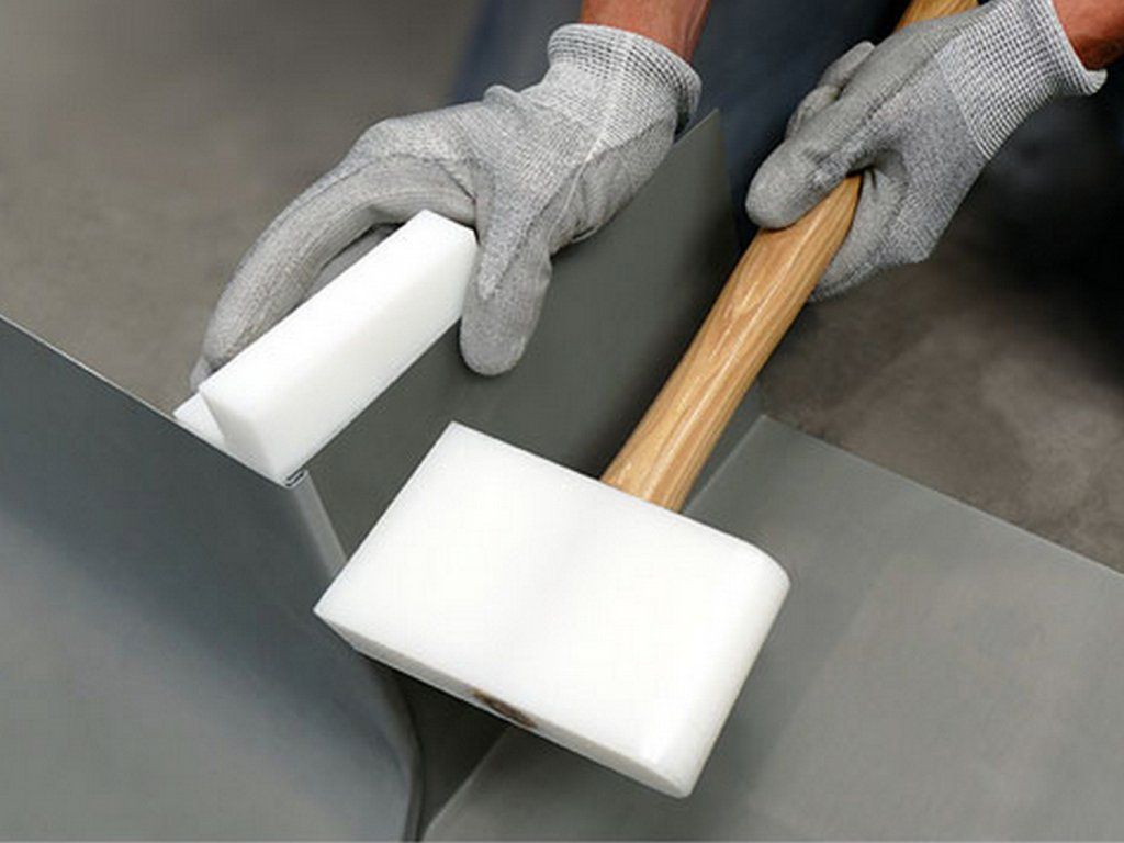 Lehký bílý hranol z kvalitního polyethylenu, který se používá jako příložník pro vytvoření spojů na plechu bez nebezpečí koroze.