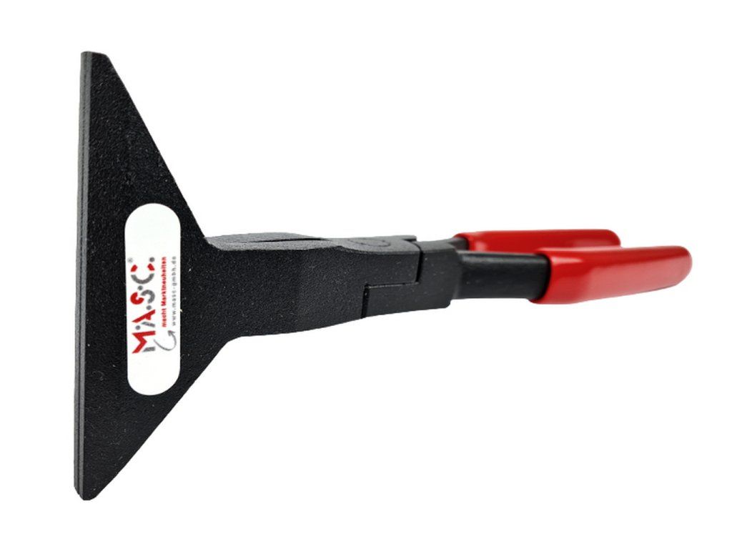 Falcovací kleště M.A.S.C. pro zmáčknutí kapsy s úzkou stranou jsou speciální klempířské kleště pro práci s plechem, určené k mačkání a uzavírání falců (záhybů) na střešních krytinách nebo okapových systémech, zejména tam, kde je potřeba pracovat na strmých sklonech nebo v rozích. Úzká strana čelistí umožňuje precizní práci v místech, kde by standardní široké kleště neobstály nebo by jejich použití bylo nepraktické, a dovoluje vytvářet menší falce a vysoké záhyby.
