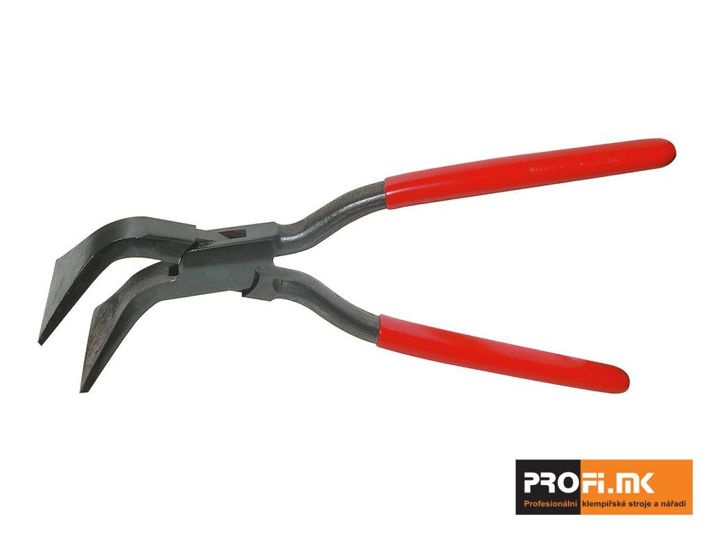 Profesionální falcovací kleště zahnuté pod úhlem 45° jsou vyrobeny z kvalitní oceli, určené pro ohýbání a tvarování plechů. Mají zaoblené hrany, aby nedocházelo k poškození materiálu, a rukojeti potažené plastem. Kleště jsou vhodné pro precizní ohýbání hran a složitější klempířské detaily, vyznačují se vysokou odolností a dlouhou životností.