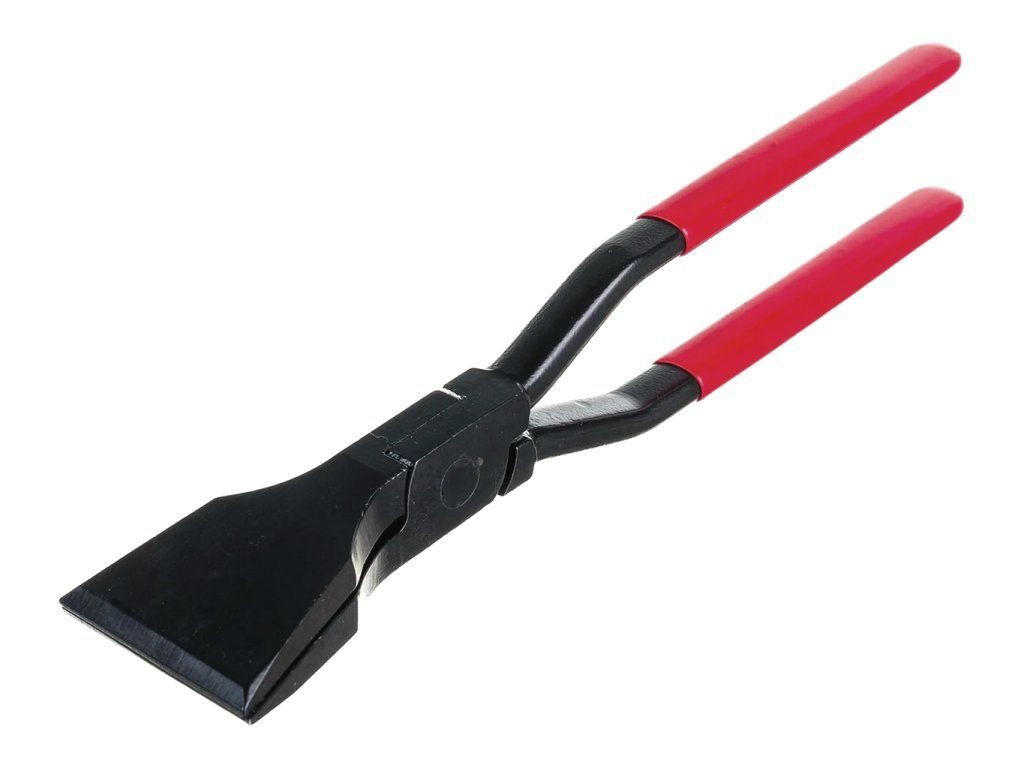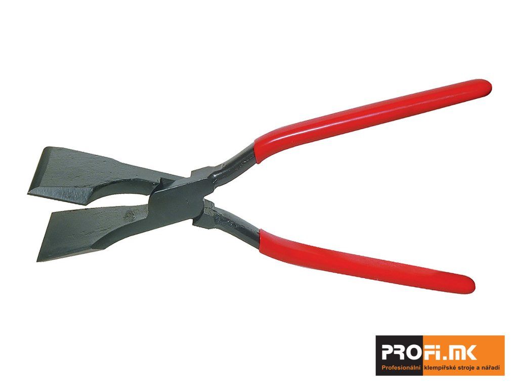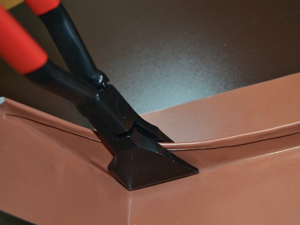 Rohové klempířské kleště s bočním spojem. Vhodné pro práci v těžko dostupných rozích a při výrobě parapetů.