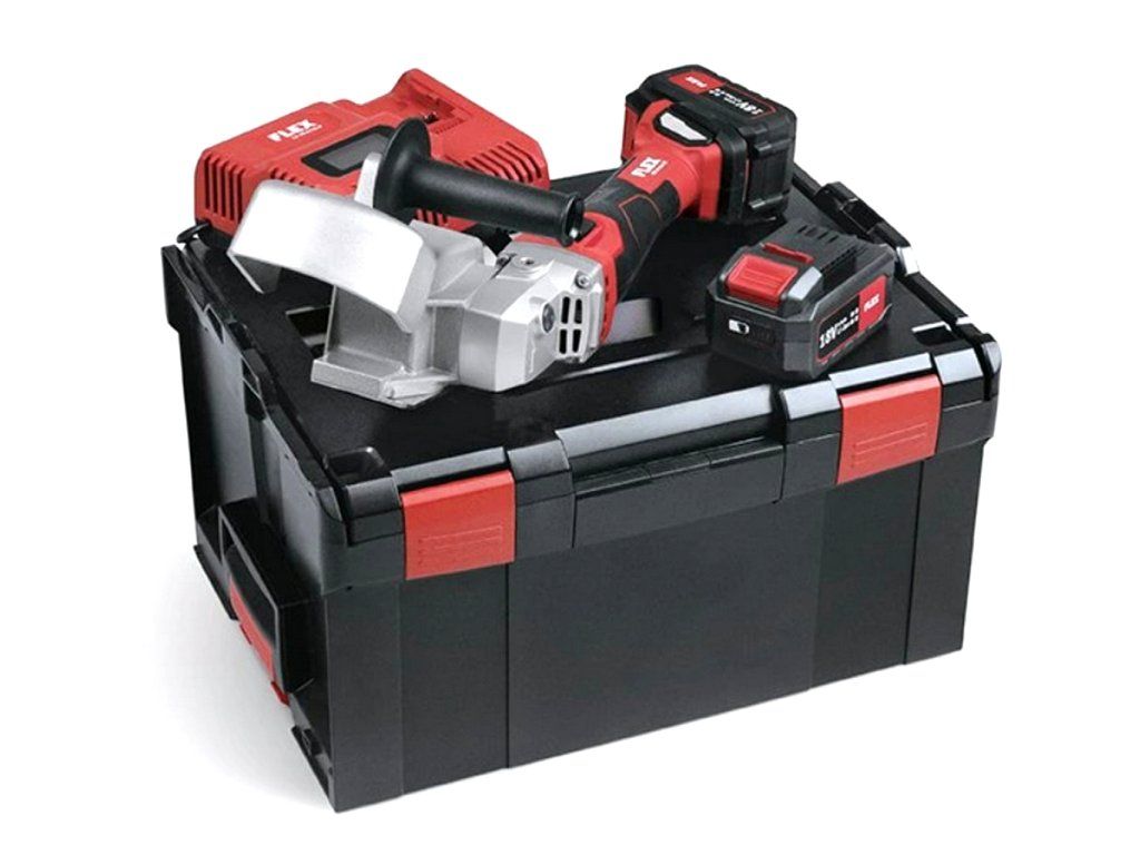 Flex fréza na drážky pro žlabové háky s šířkou frézování 40 mm vč. baterie, rychlo-nabíječky a plastového přepravního pouzdra.