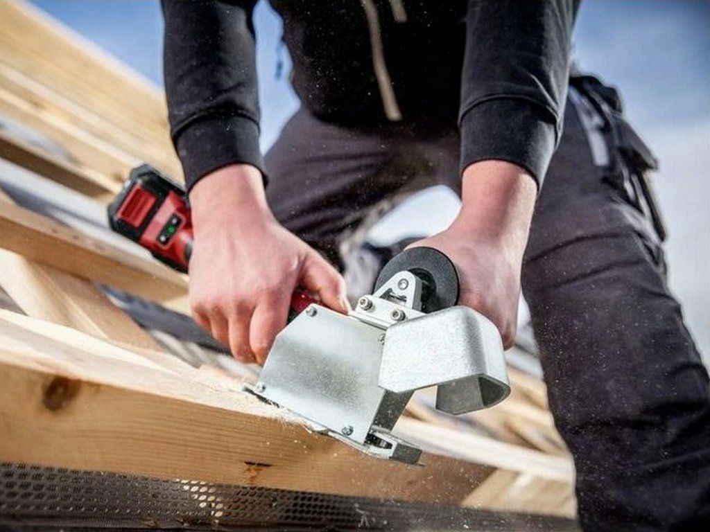 Aku fréza RFE 40 18.0-EC/5.0 Set na drážky pro žlabové háky je dodávána vč. baterie, rychlo-nabíječky a přepravního pouzdra. Toto praktické zařízení s ne příliš velkými rozměry umožňuje volnou práci z lešení nebo přímo na střeše. Pomocí frézy lze rychle, bez zbytečného nepořádku přesně frézovat vybrání v různých materiálech a uspořádat okapové háky do drážek.