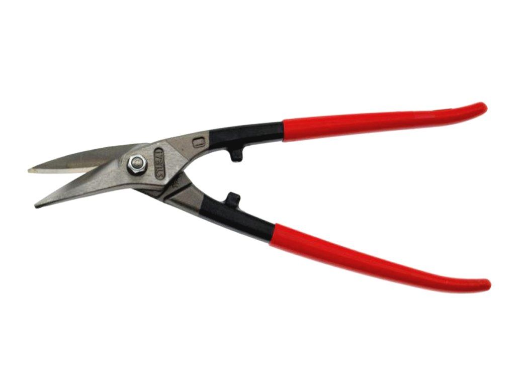 Speciální nůžky na plech s plastovými rukojeťmi, pro rovné, zakřivené a průběžné střihy. Kalené břity s třídou tvrdosti 60-62 HCR.