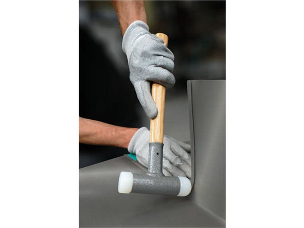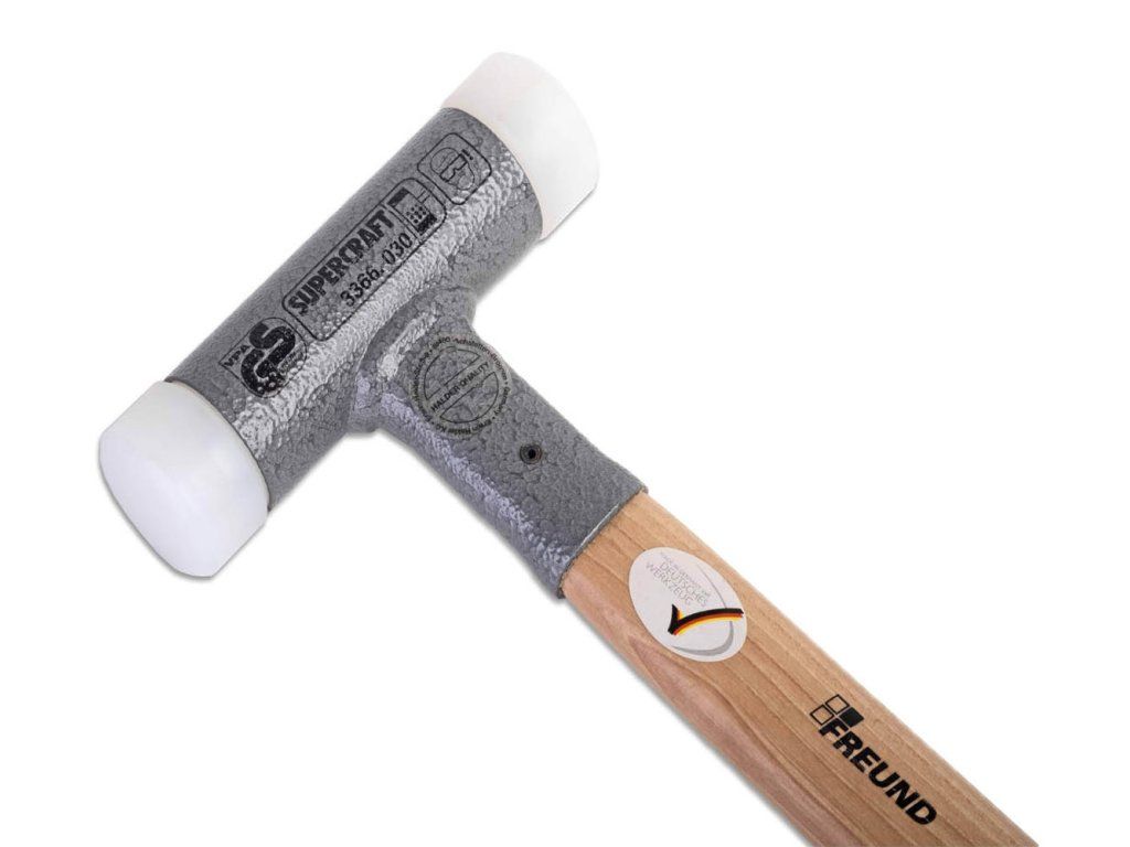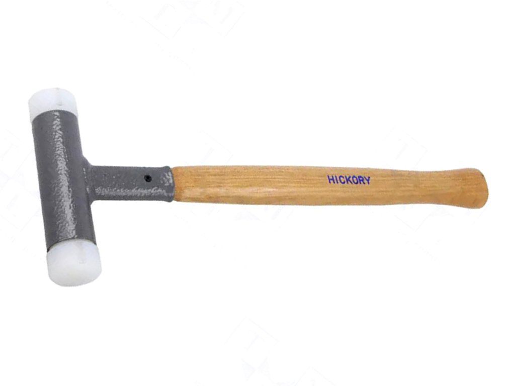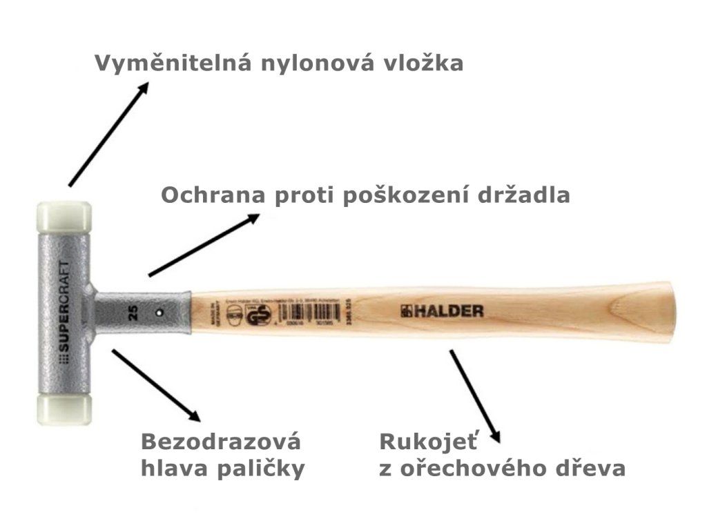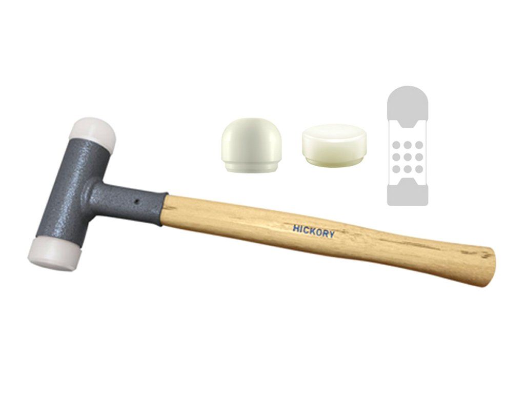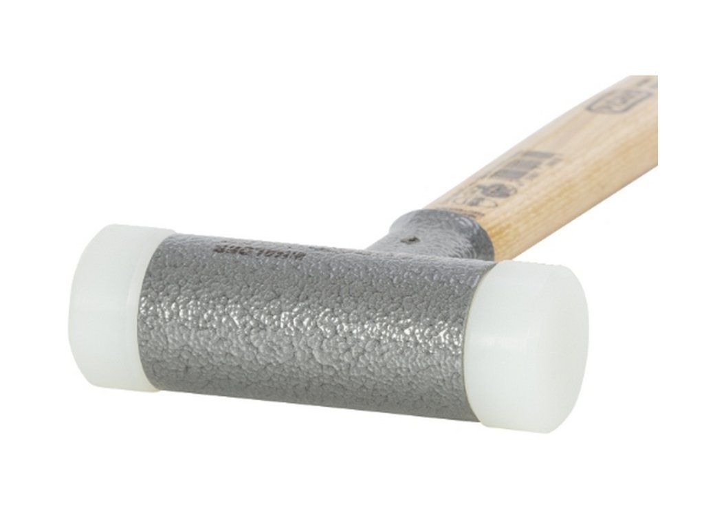 Tato bezodrazová palička má na jedné straně zaoblenou vložku. Ta díky chybějícím hranám brání poškození materiálu nebo otiskům. Nylonové vložky nabízí vynikající vlastnosti úderu a zaručují maximální pevnost s dlouhou životností. Násada a vložky jsou vyměnitelné.