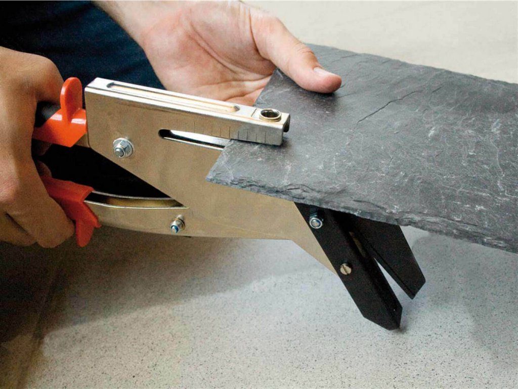 Ruční nůžky pro současné stříhání a děrování přírodní břidlice, eternitu a vláknocementové desky. Zabraňují prasknutí desky.