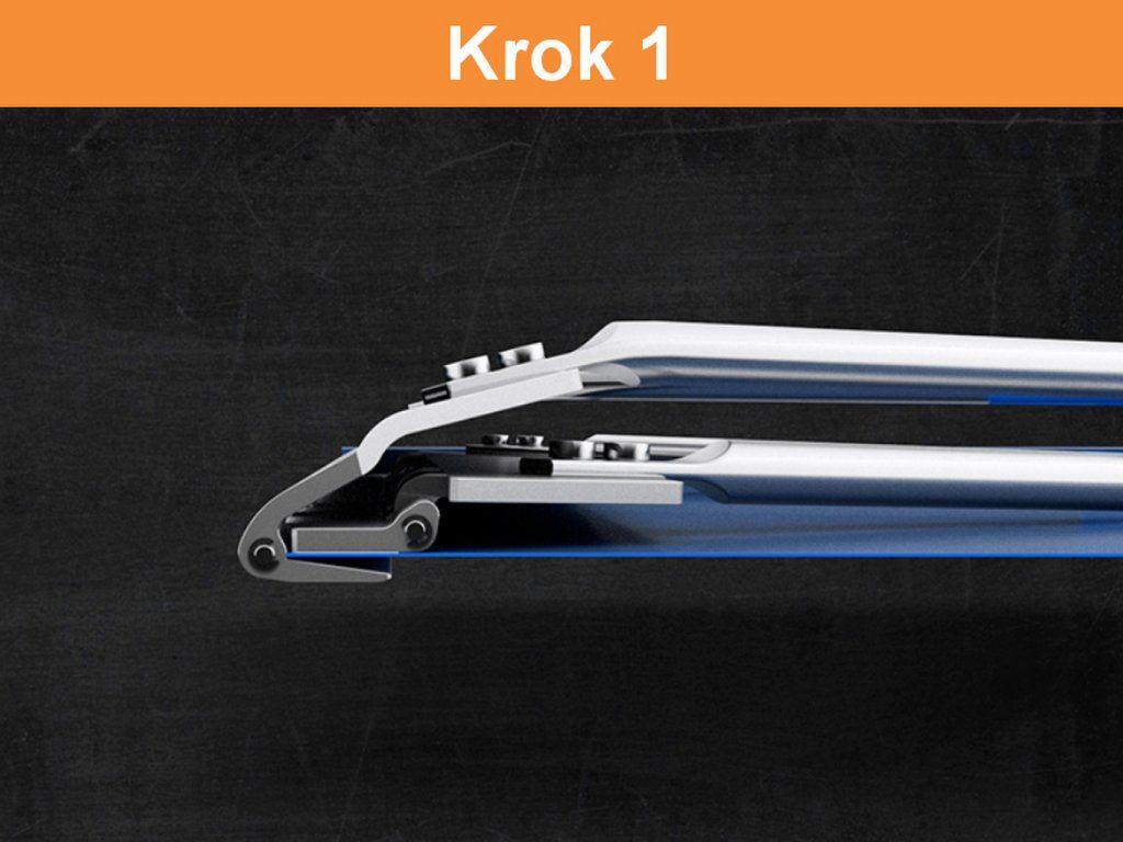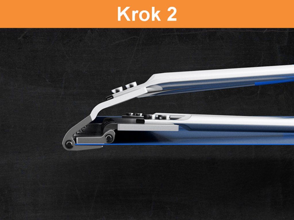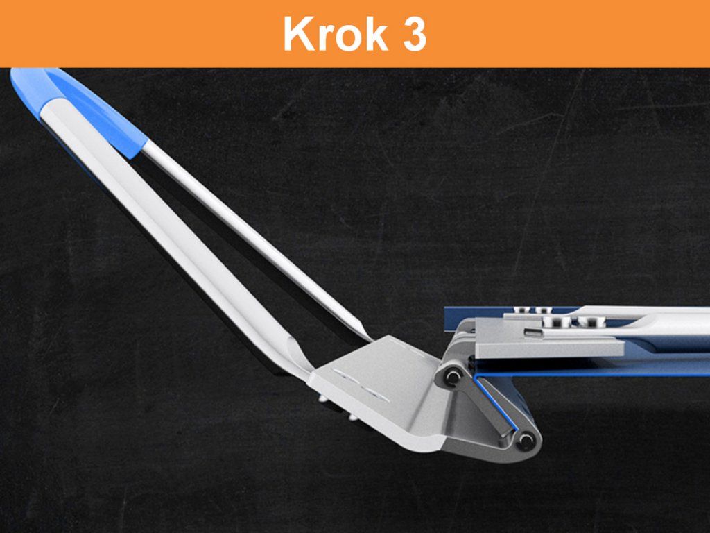 - Dolní rukojeť se otočí o 180° směrem k horní rukojeti.