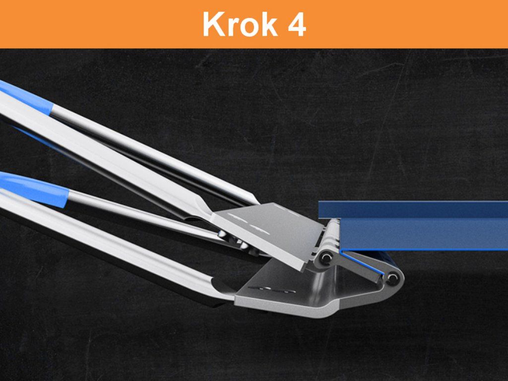 - Dalším pohybem horní rukojeti směrem nahoru (přes druhou osu otáčení o 164°) se plech ohne a přehyb je dokončen.