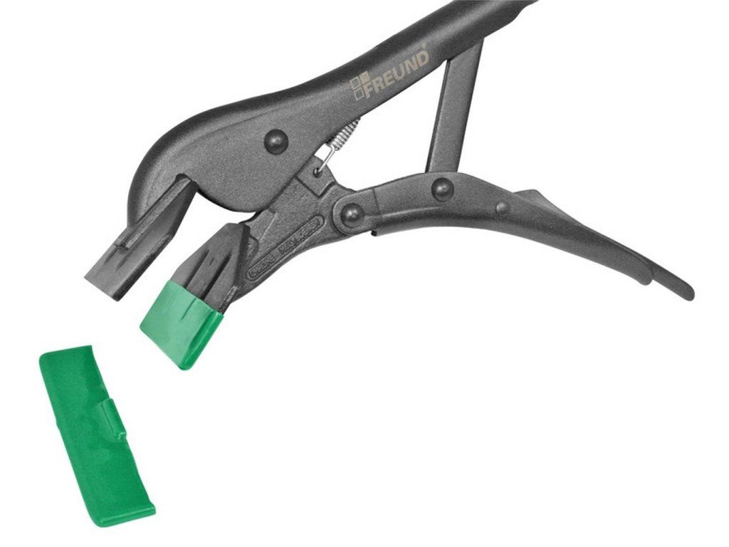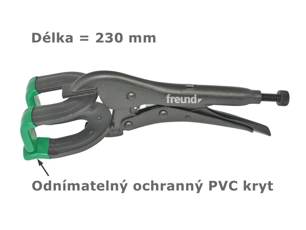 Samosvorné kleště Freund s odnímatelnou PVC ochranou ve dvou variantách: ploché a zahnuté s dvojitou čelistí W.