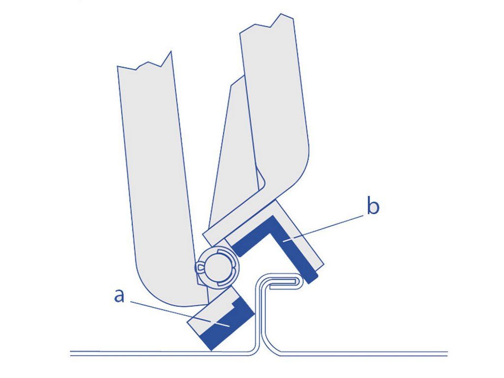 b = ohýbací plastová čelist (upevnění nýty)