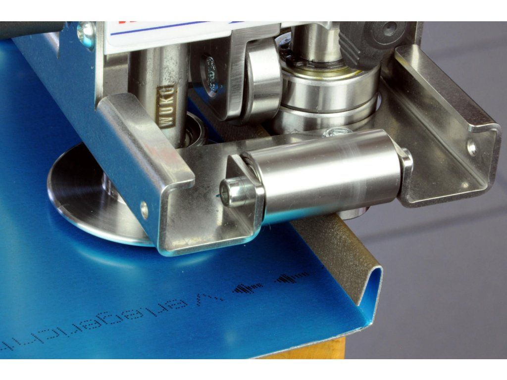 Speciální ohýbačka pro ohyb 0-180° v jediném nástroji s výškou ohybu 6-200 mm. Umožňuje zhotovení lemu do výšky 14 mm.