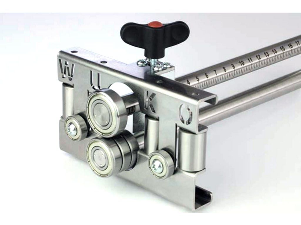 WUKO Uni Bender 2354 je profesionální ruční ohýbačka plechu určená k ohýbání plechových profilů od 0° do 90°. Je ideální pro práci přímo na stavbě, pro rovné i zakřivené ohyby a materiál do tloušťky 0,8 mm. Vyznačuje se dlouhou konstrukcí z nerezové oceli, nastavitelnou výškou ohybu od 5 do 350 mm a čtyřmi dorazovými válci pro přesné vedení.