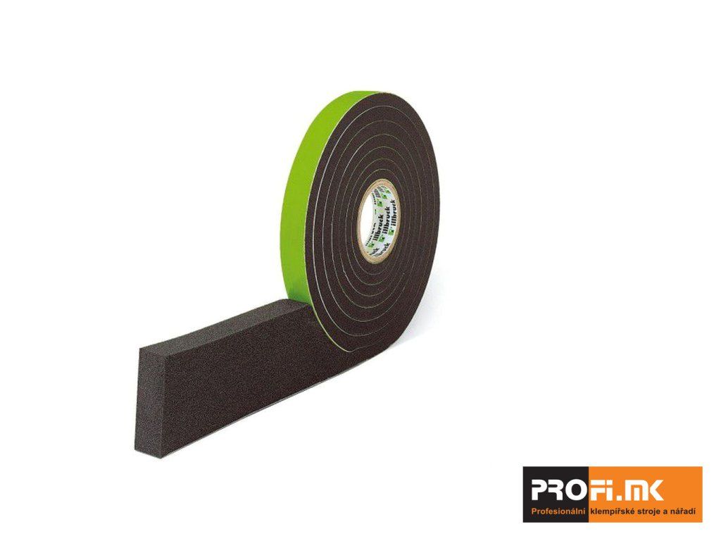 Materiál: Impregnovaná jednostranně lepící polyuretanová těsnící páska se strukturou otevřených buněk. K impregnaci je použito syntetické pryskyřice. Barva tmavě šedá.