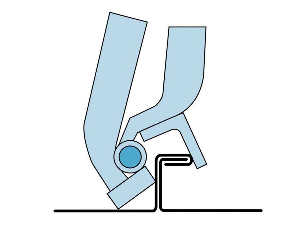 Specializovaný uzavírač pro druhý ohyb dvojité stojaté drážky z 90 na 180°, snadné a rychlé uzavření stojaté drážky.